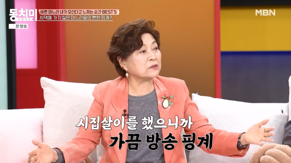 지난 8일 방송된 MBN '속풀이쇼 동치미'에서는 '바쁜 며느리 내가 모신다고 느끼는 순간'을 주제로 이야기를 나눴다.